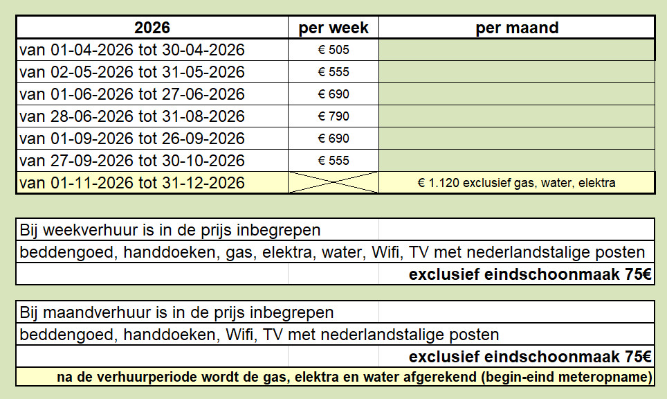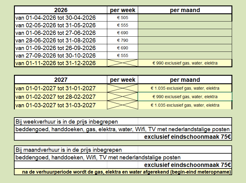 Bij maandverhuur in de winterperiode (de huurperiode is minimum 1 maand)